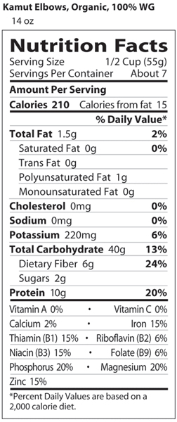 Ingredients: Organic Whole Grain Kamut